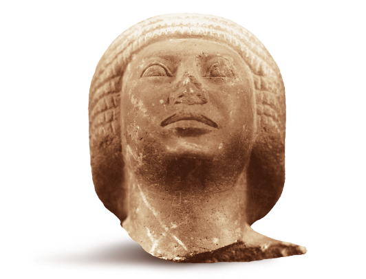 Part of Giza Excavation Season 1932-1933 : Basalt head of Ni-ankh-re with damaged nose . Object registration no.824 12/2/1933 ..More