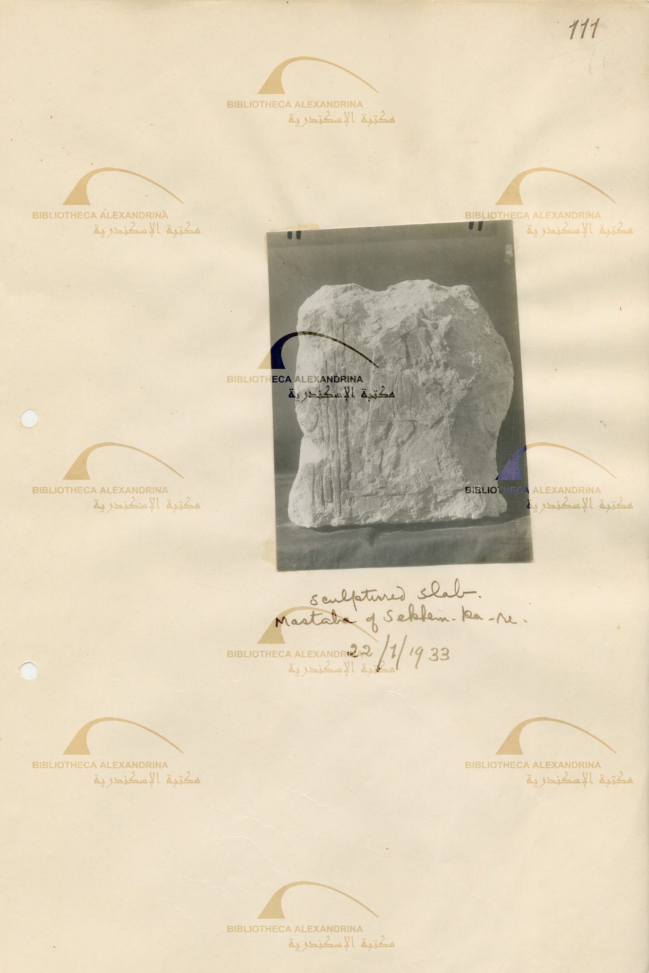 Sculptured slabs, mastaba of Sekhem-ka-re 22\1\1933