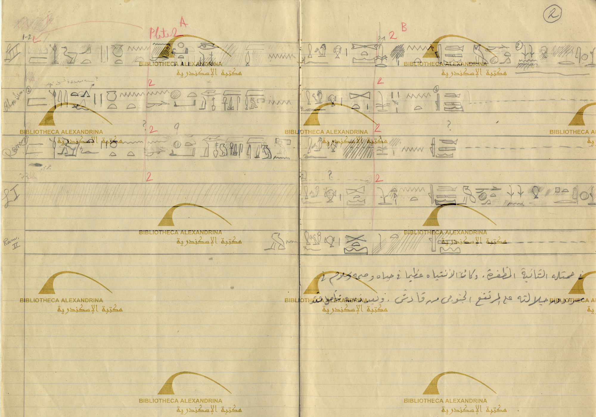 The Battle of Kadesh - Text from Luxor temple, Ramesseum Temple and Abu-Simbel Temple- Hieroglyphic text with Arabic translation (2nd line)