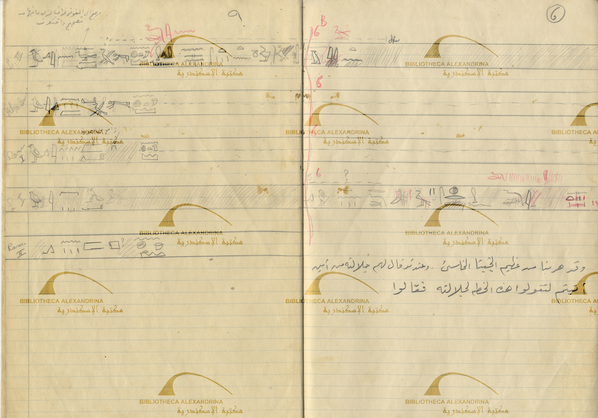 The Battle of Kadesh - Text from Luxor temple, Ramesseum Temple and Abu-Simbel Temple- Hieroglyphic text with Arabic translation (6th line)