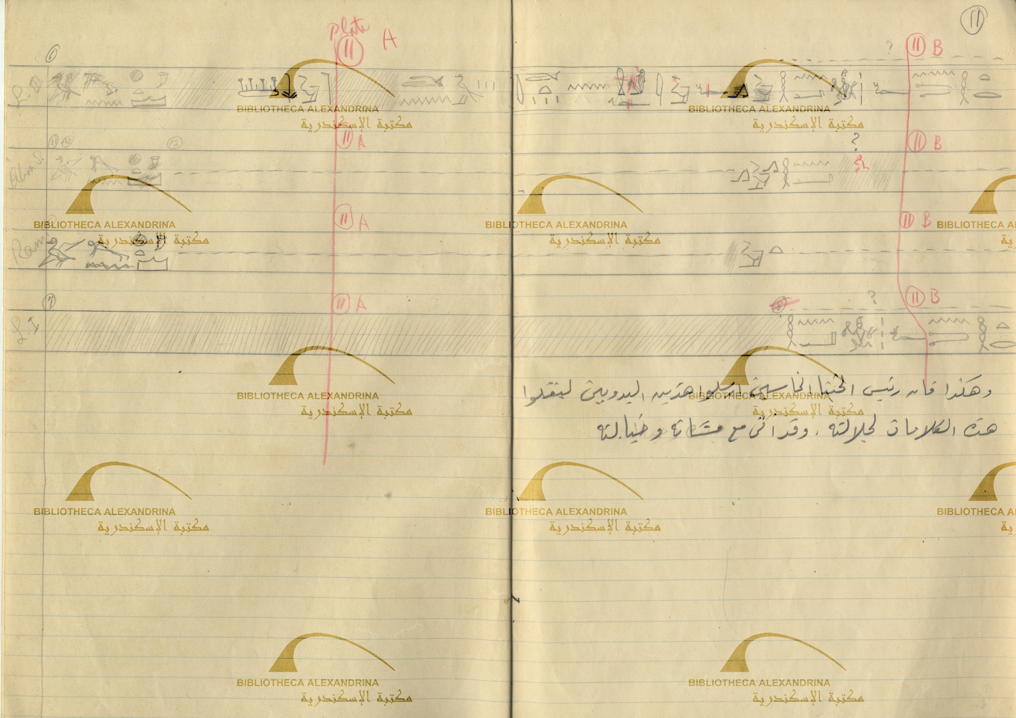 The Battle of Kadesh - Text from Luxor temple, Ramsseum Temple and Abu-Simbel Temple- Hieroglyphic text with Arabic translation (11th line)