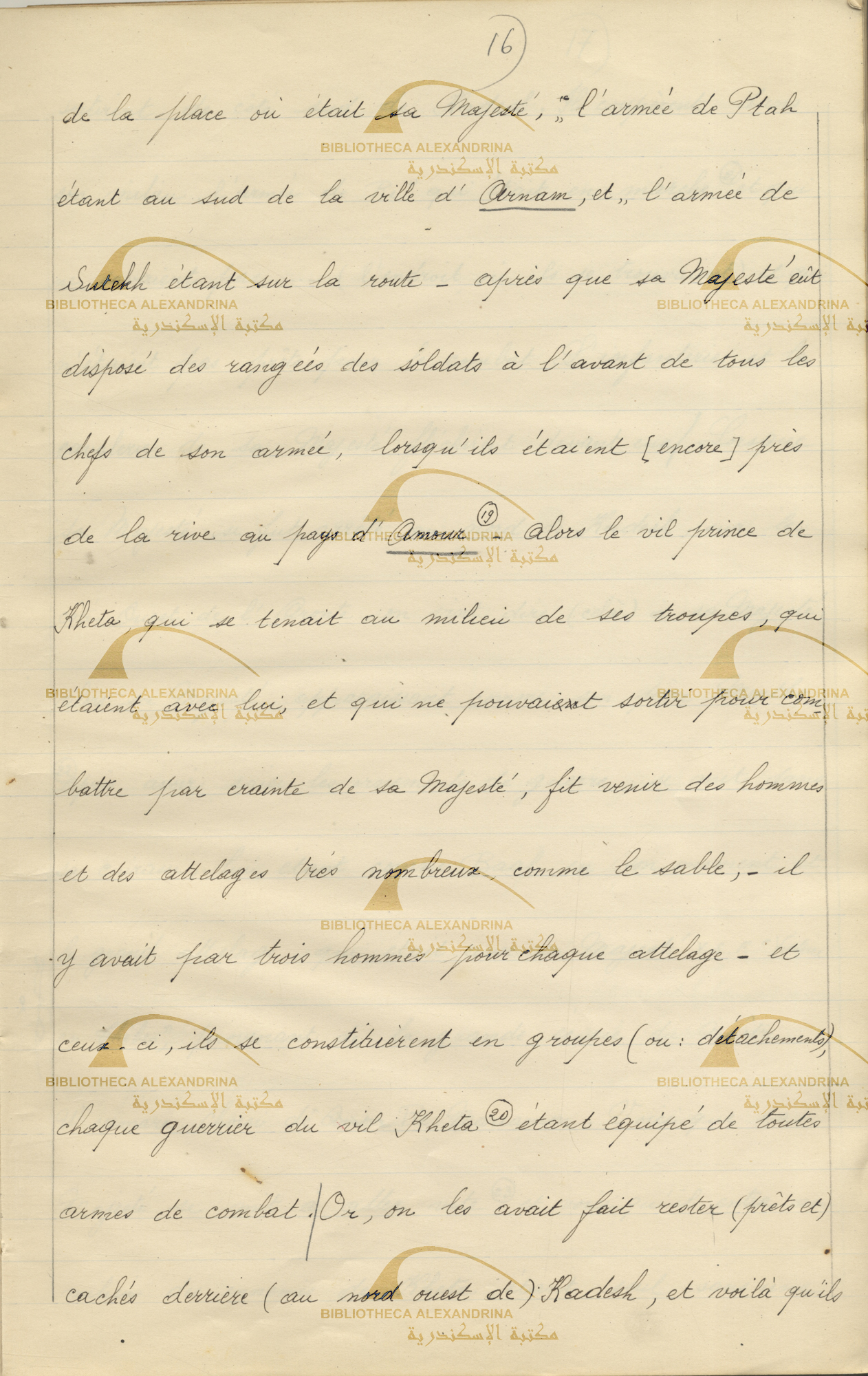 The Poem of Pentaur, translation in french "Le Poème de Pentaour " By Selim Hassan form line 18, 19, 20.