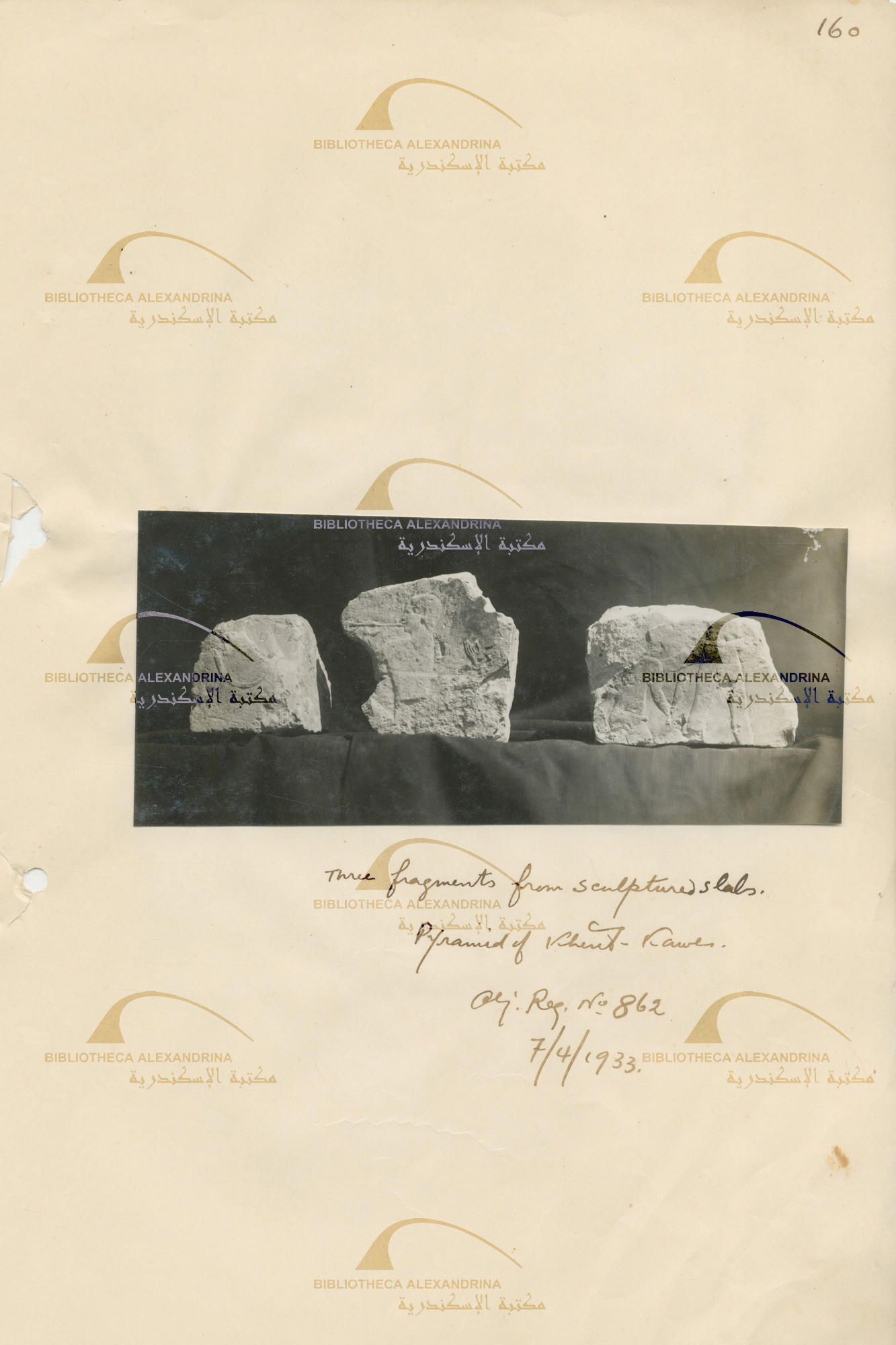 Three fragments from sculptured slabs, pyramid of Khent-kawes Object registration no. 862 7/4/1933