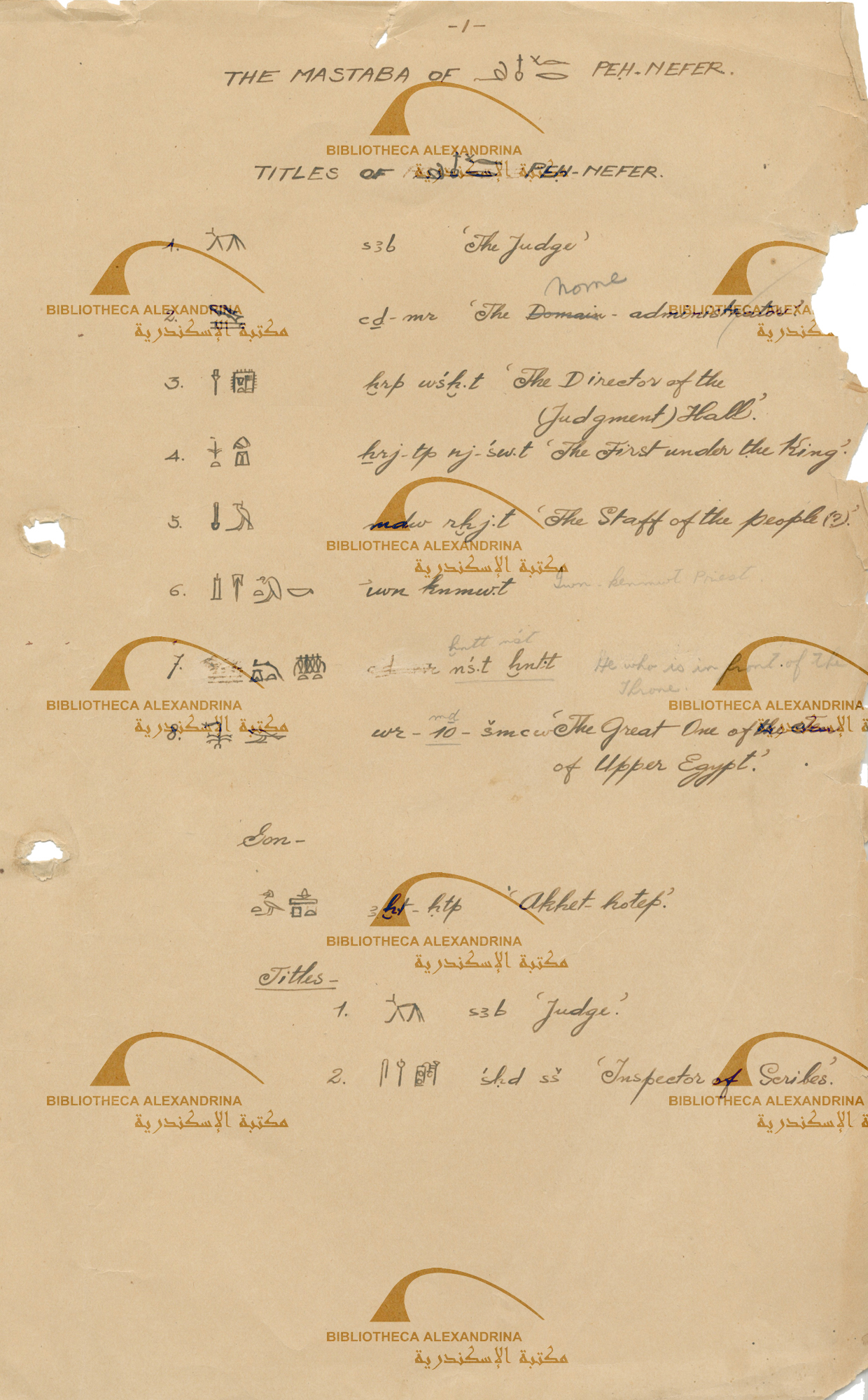 Mastaba of Peh-Nefer - owner titles- Mastaba at -Saqqara