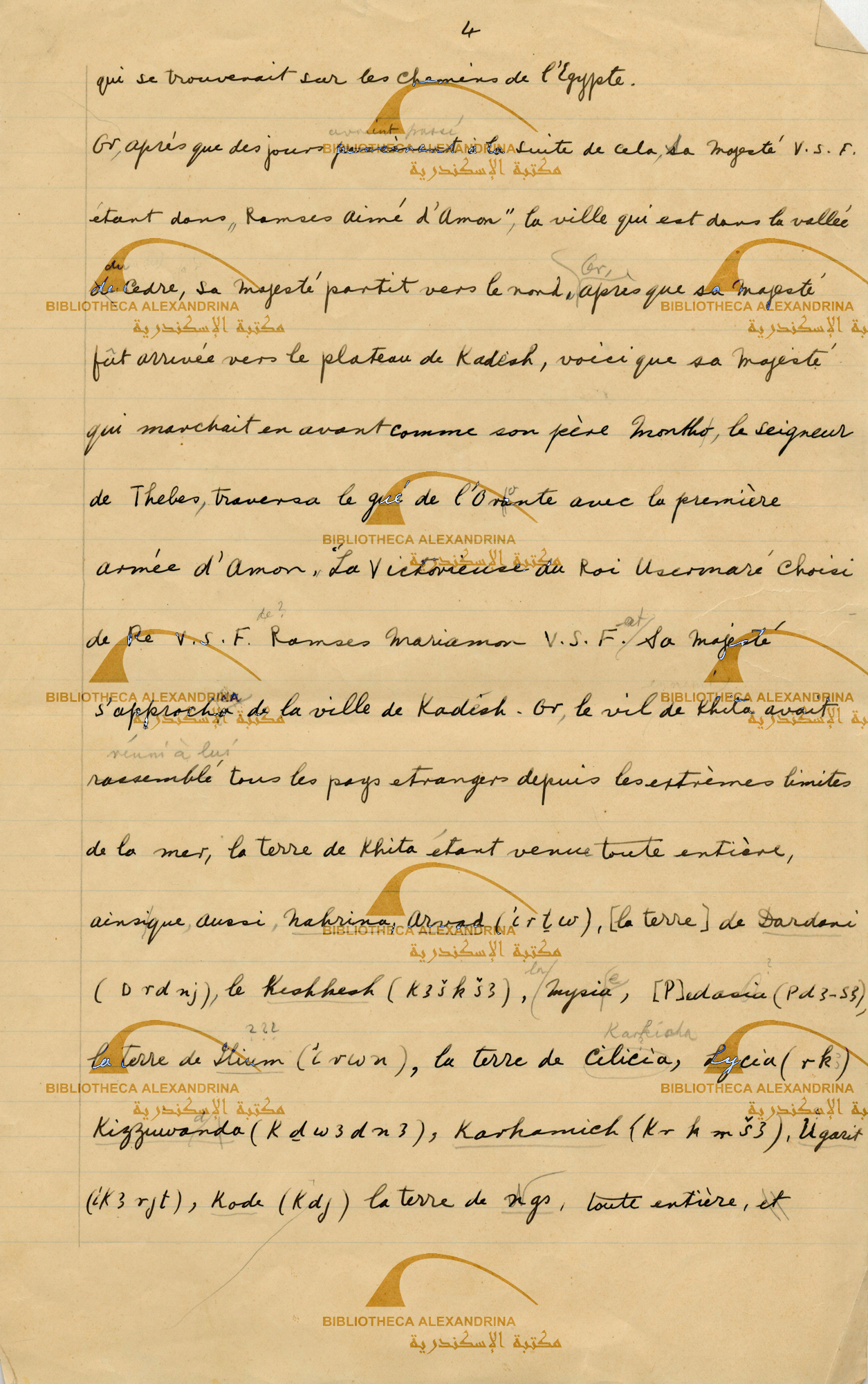The Poem of Pentaur , translation in french "Le Poème de Pentaour " By Selim Hassan. Line10-14