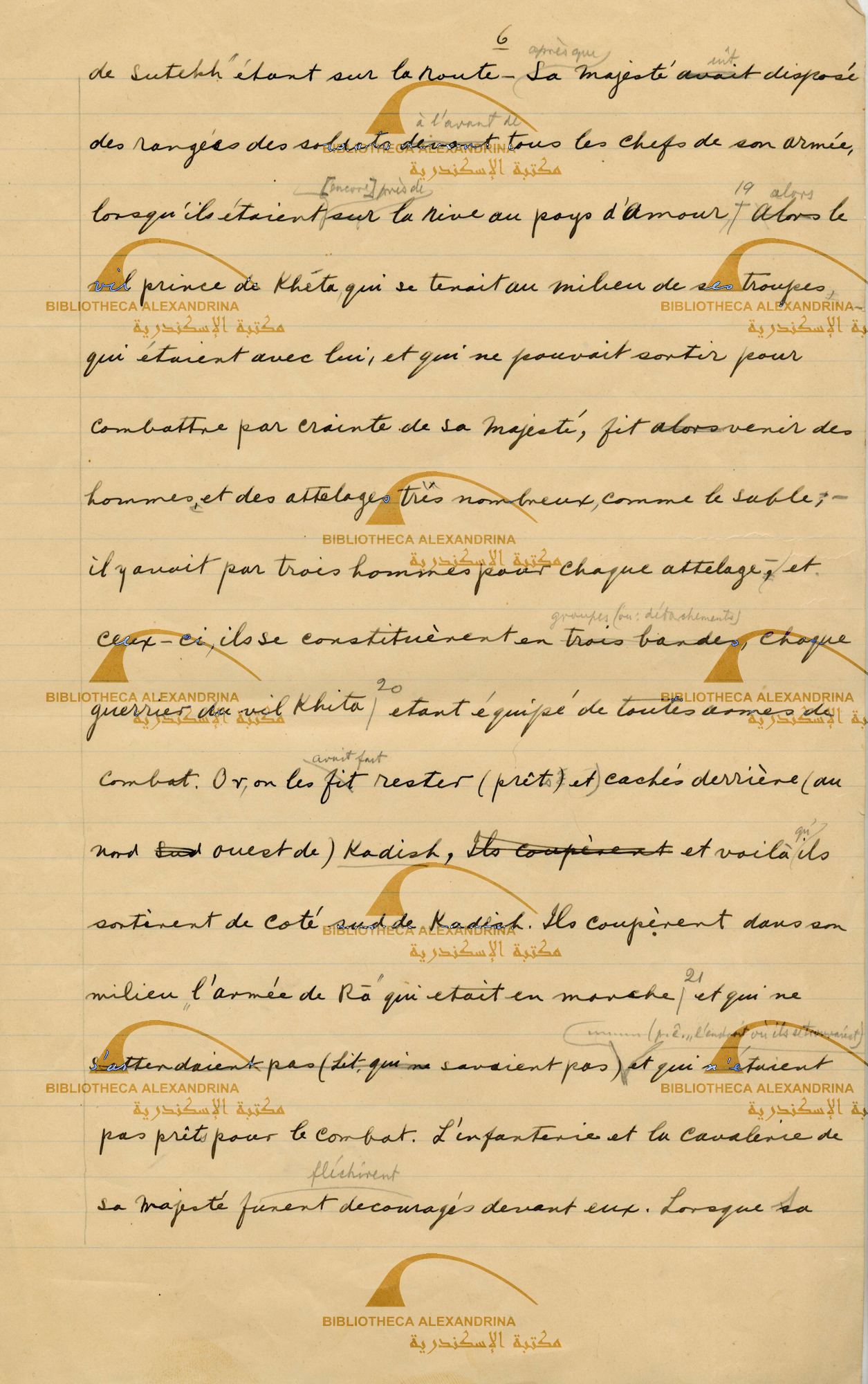 The Poem of Pentaur , translation in french "Le Poème de Pentaour " By Selim Hassan. Line18 - 21
