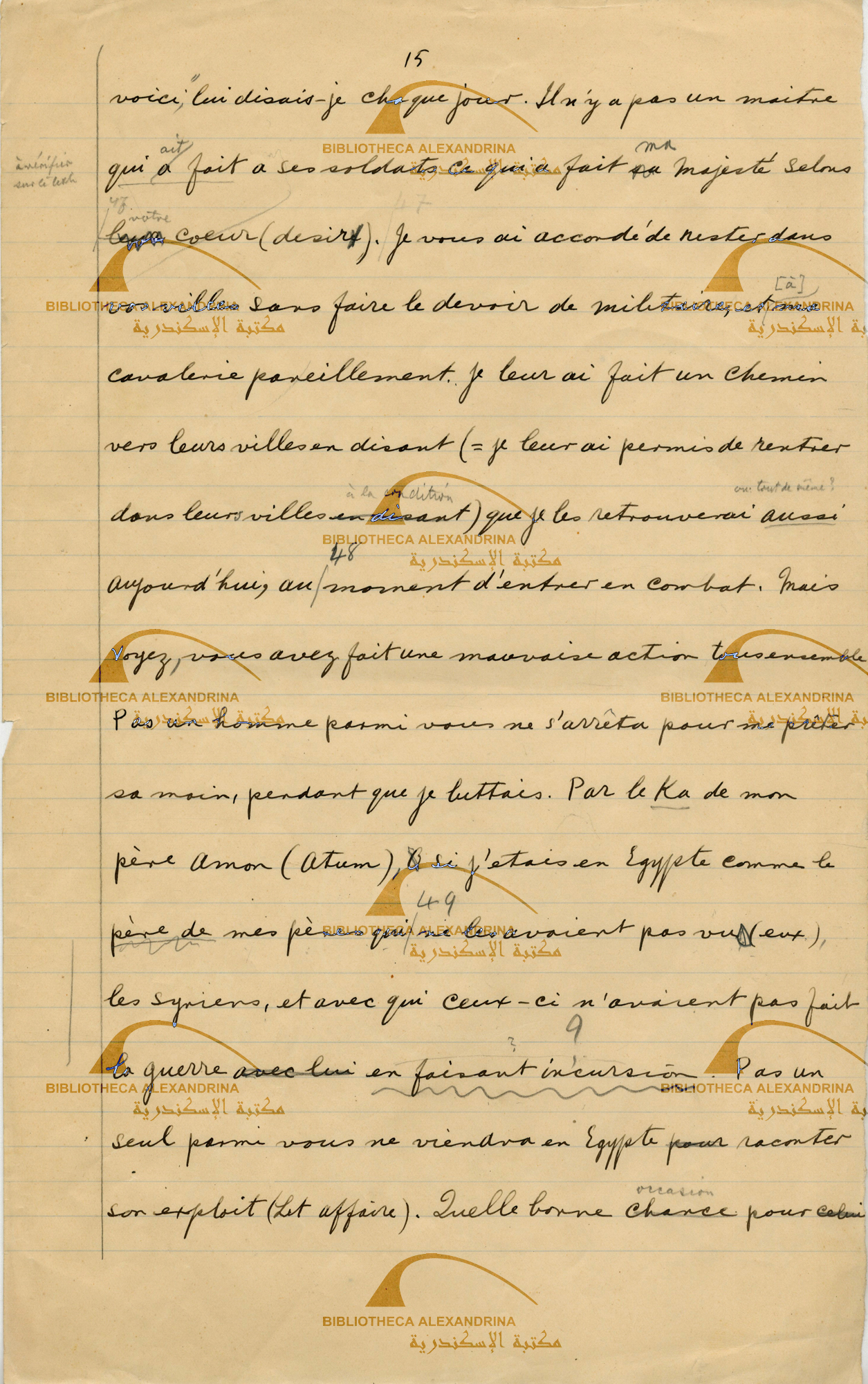 The Poem of Pentaur, translation in french "Le Poème de Pentaour " By Selim Hassan line 46 -49