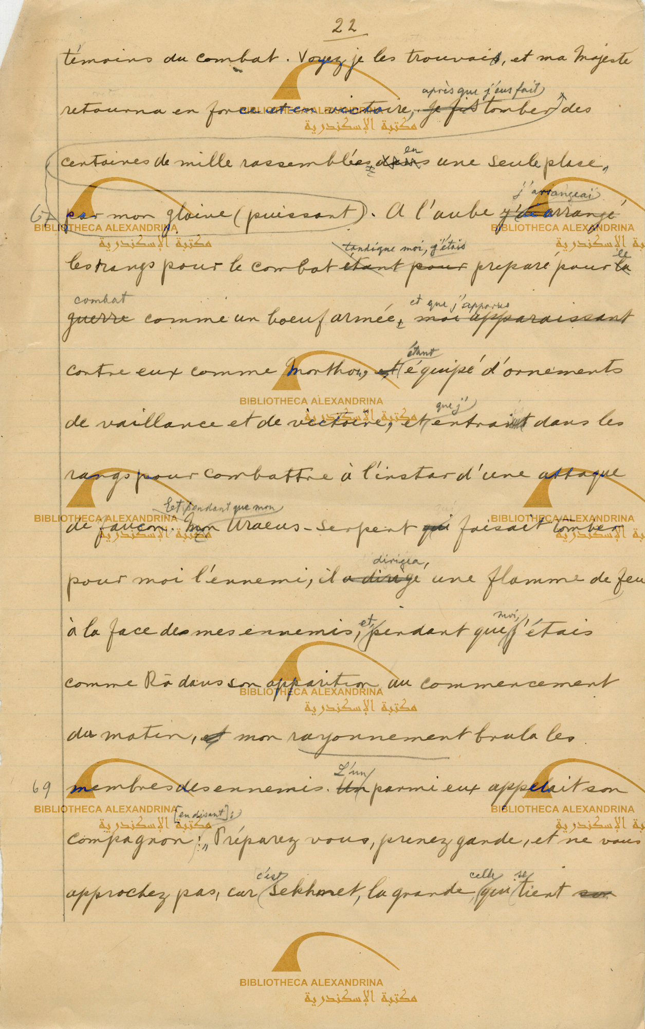 The Poem of Pentaur, translation in french "Le Poème de Pentaour " By Selim Hassan line 66 -69