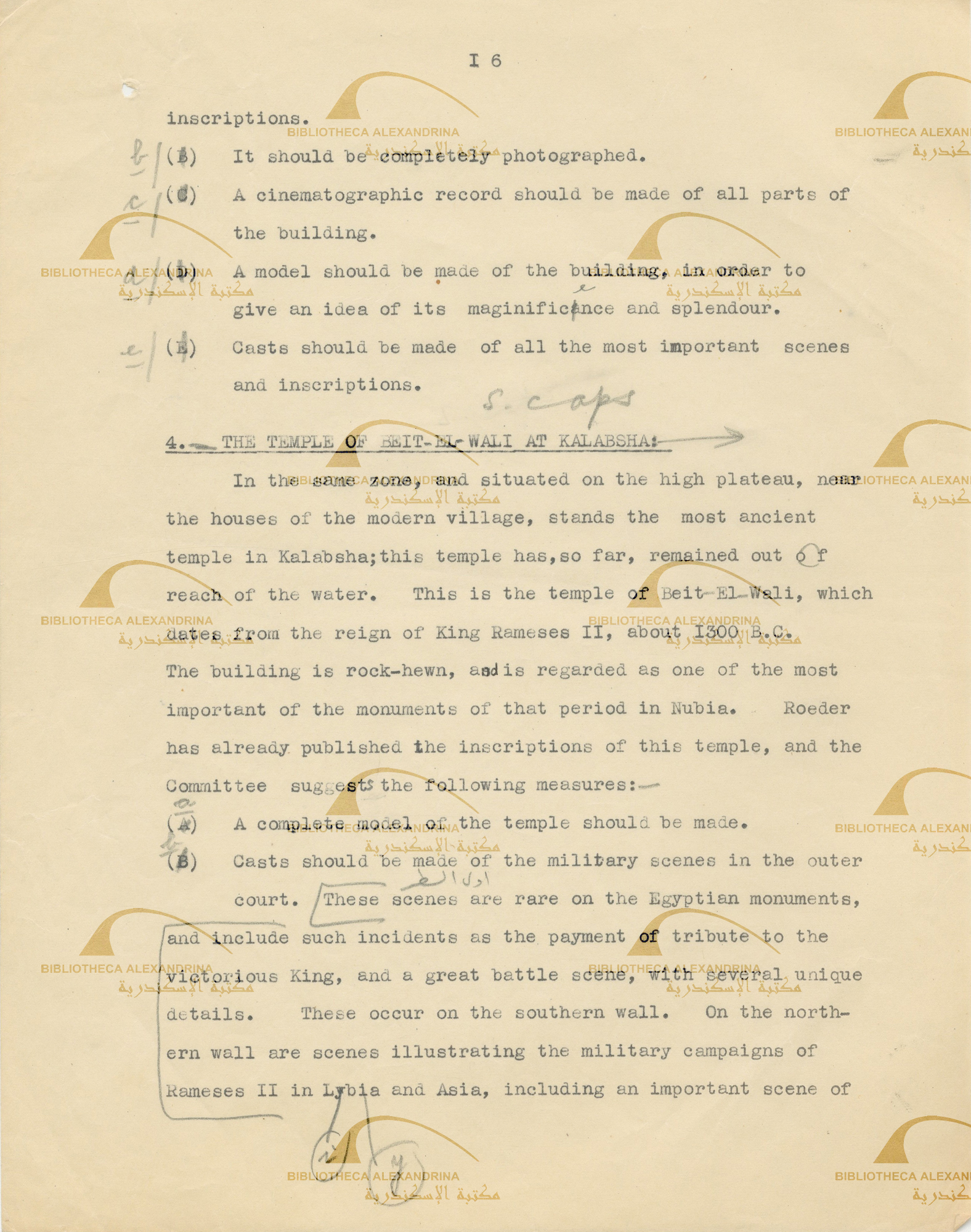 Report of the effects of the high Dam on Nubia - the duties of the committee in ( temple of Beit el wali ) at kalabsha