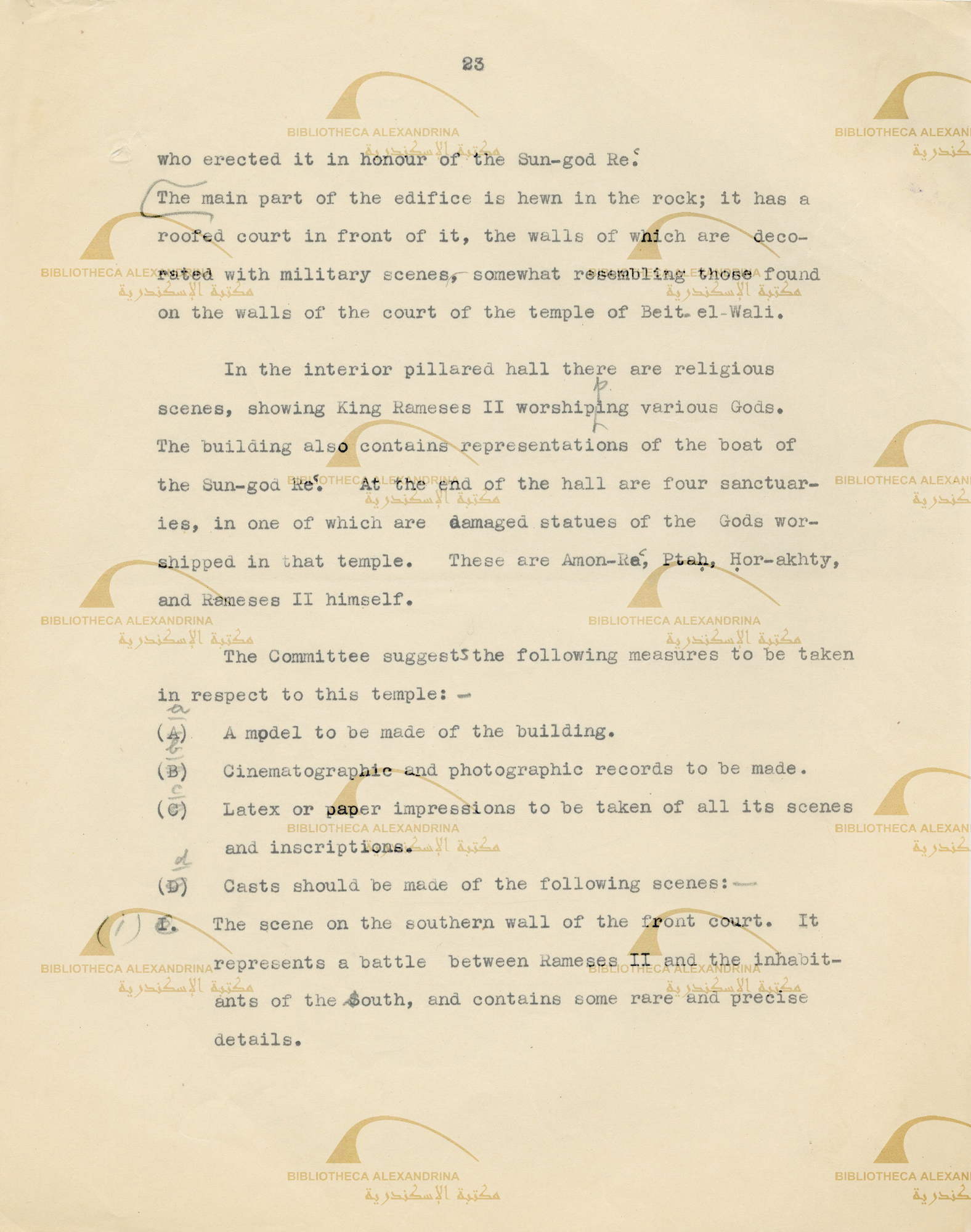 Report of the effects of the high Dam on Nubia - the duties of the committee in ( Temple of Derr)