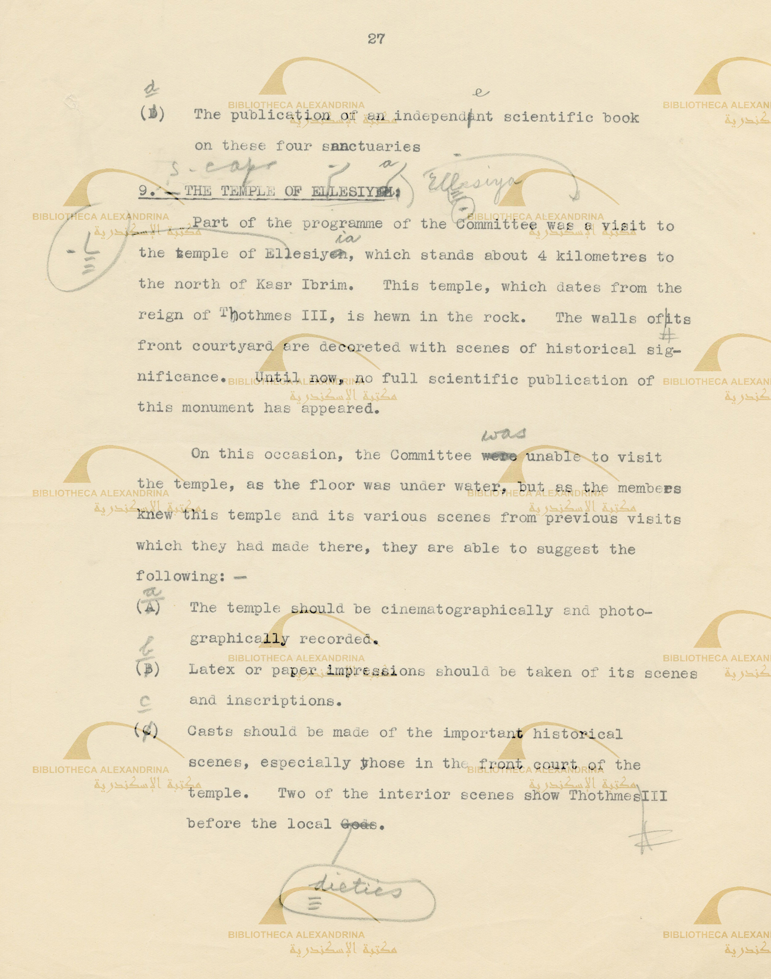 Report of the effects of the high Dam on Nubia - the duties of the committee in temples of El lesiya
