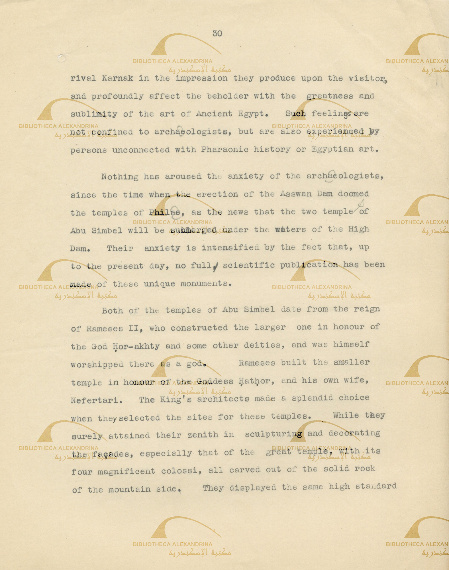 Report of the effects of the high Dam on Nubia - the duties of the committee in the monuments of Abu simbel