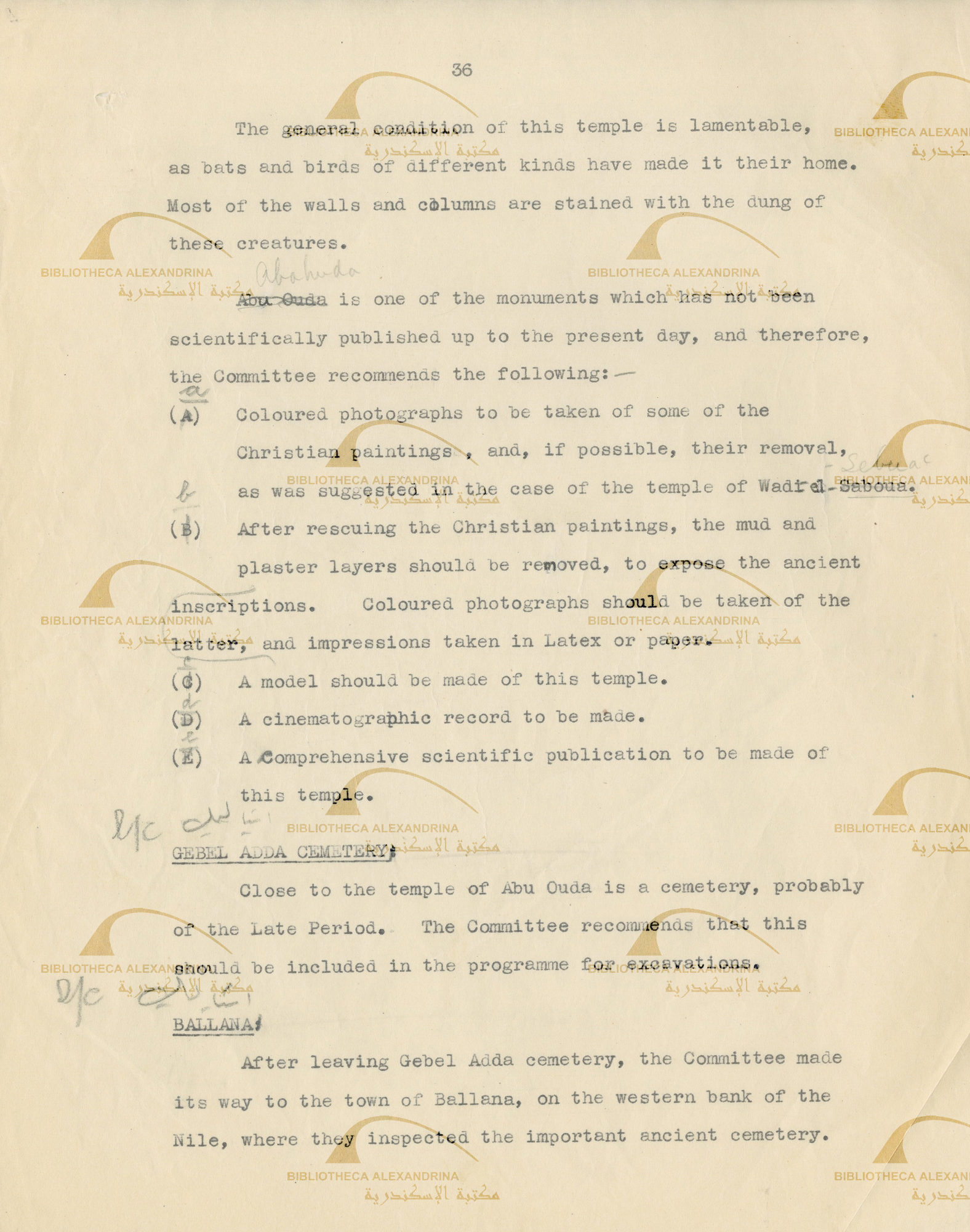 Report of the effects of the high Dam on Nubia - the recomendition of the committee of temple of abu-Ouda