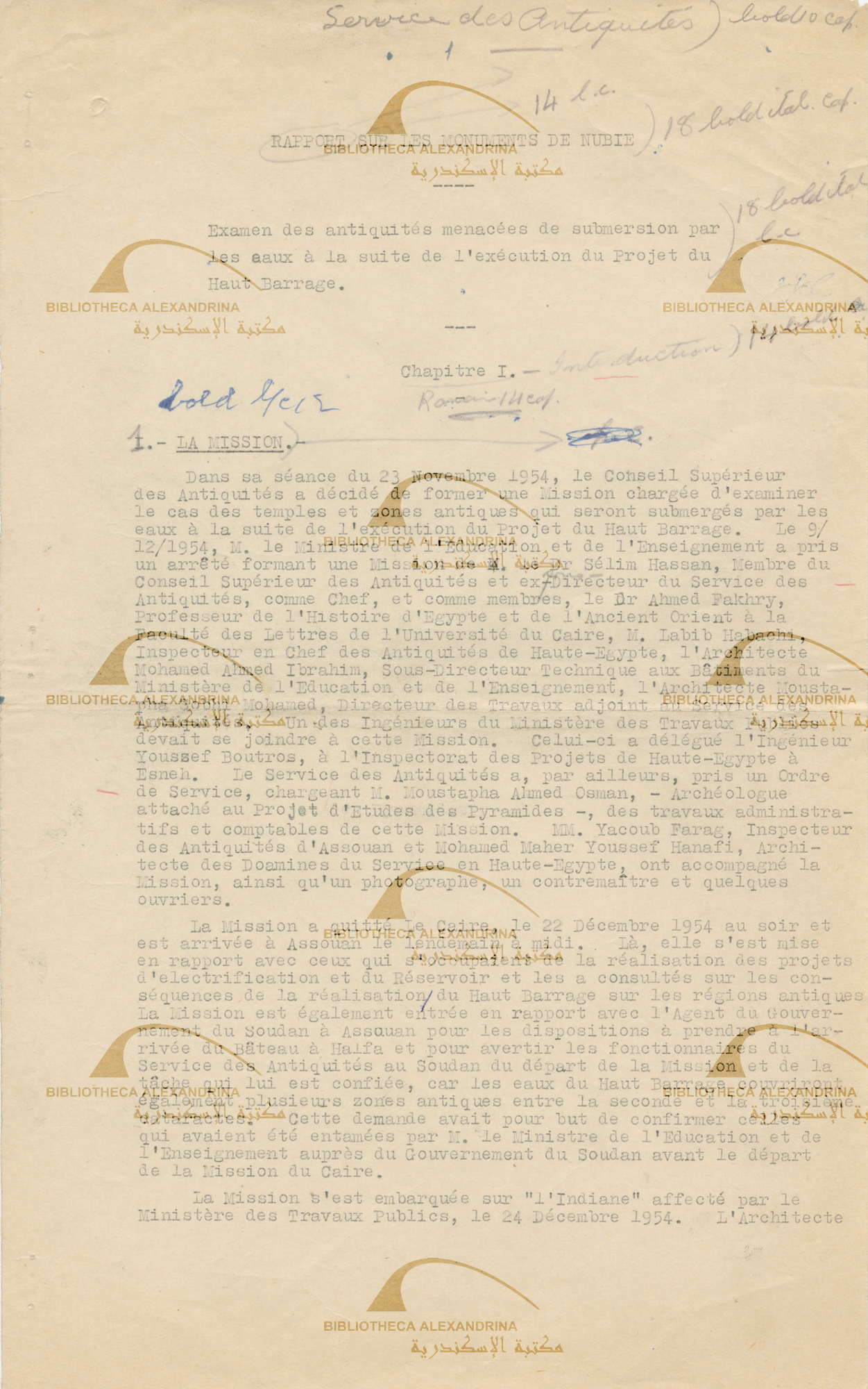 Report of the effects of the high Dam on Nubia -Forming the committee for the mission for the examination of the monuments
