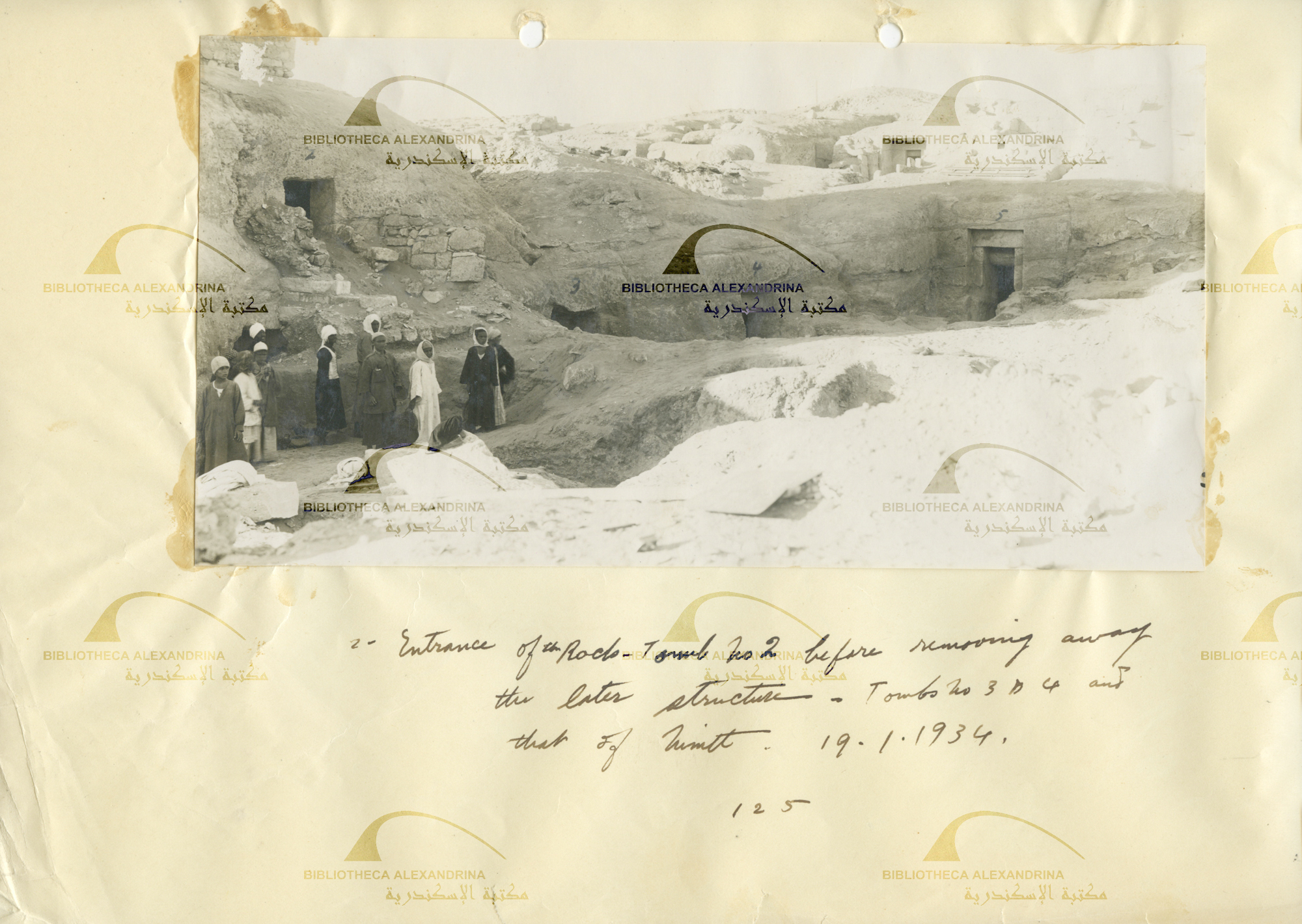 Entrance of the rocks-tomb no.2 before removing away the later structure - tomb no 3,4 and that of Nfr-Nmtt 19/1/1934
