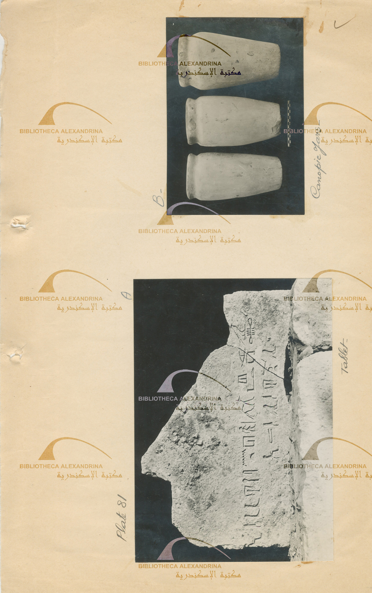 (A) Tablet from the Mastaba of Nebkawher (Idw)-Dynasty VI-Saqqara (B) Canopic Jars from the Mastaba of Nebkawher (Idw)-Dynasty VI-Saqqara